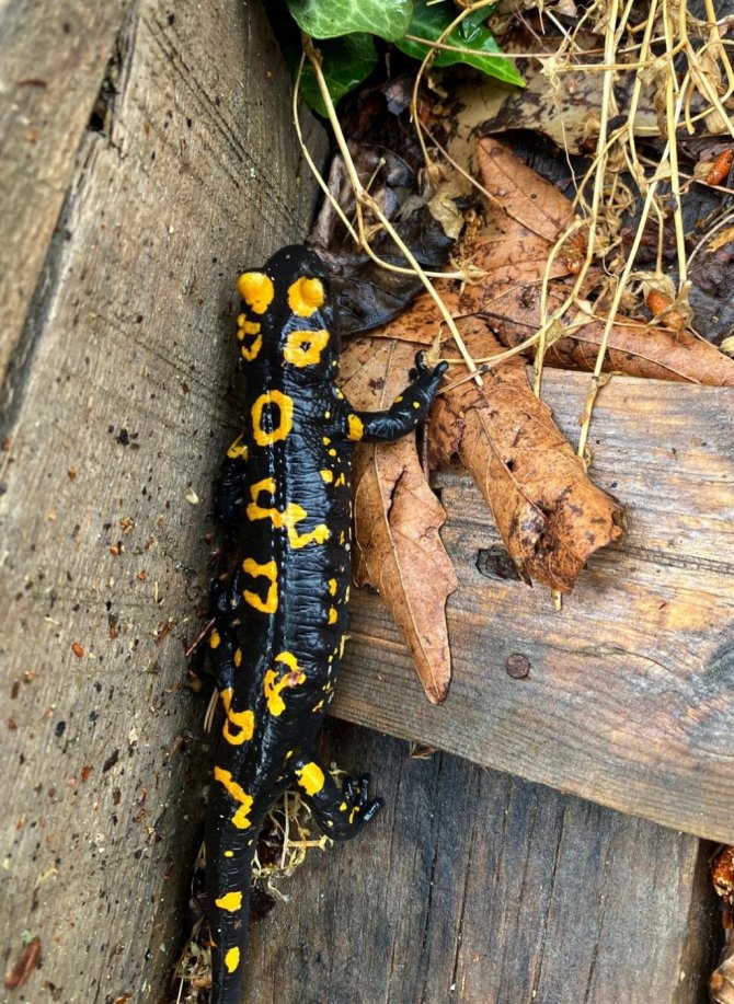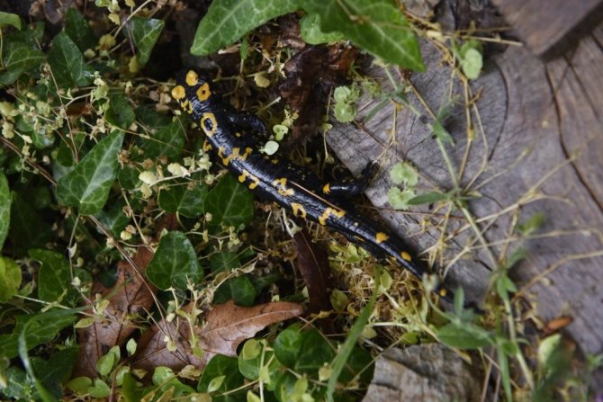 Adana'da nesli tehdit altında olan sarı benekli semender bir vatandaş tarafından görüntülendi.