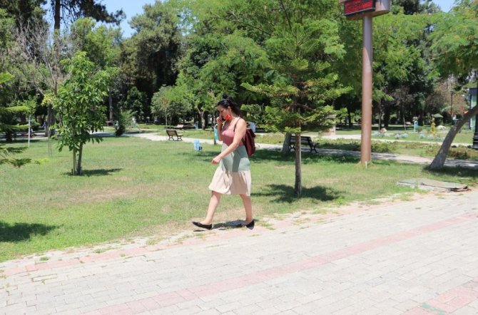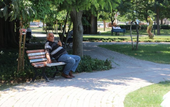 Parktaki gölgelik alanda atletle oturan Bekir Uyanık ise sıcaktan bunaldığını belirterek, "İster istemez sıcağı hissediyoruz. Sıcaktan bunaldım, tişörtü çıkarttım. Kendimizi parka attık" dedi.