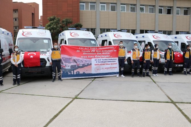 Adana'da 3'ü yenidoğan olmak üzere toplam 26 ambulans düzenlenen törenle hizmete alındı. Kentteki ambulans sayısı 115'e yükseldi.