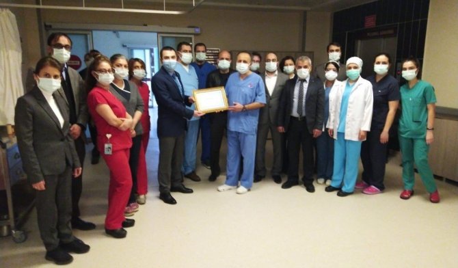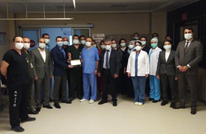 Kalp Damar Cerrahisi ve Kardiyoloji Kliniklerinde görev yapan hekimler ve sağlık personellerine göstermiş oldukları üstün gayret ve özverili çalışmalarından dolayı İl Sağlık Müdürü Dr. Osman Açıkgöz tarafından verilen "Teşekkür Belgeleri" Başhekimlik tarafından kendilerine takdim edildi.