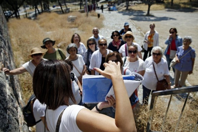 Sabah saat 10.00’da Konak Belediyesinin Basmane’deki hizmet binası önünden servisle alınan konukların ilk durağı Bayramyeri’ndeki Altınyol da denilen tarihi Roma yolu oldu. Ardından Kadifekale’ye çıkarılan konuklar İzmir Körfezi’nin eşsiz manzarasını tarihi kalenin surlarından ve adeta kente selam çakan 40 metrelik Türk bayrağının bulunduğu yerden İzmir panoramasını izleme fırsatı buldu. Eşsiz manzaranın seyrinden sonra Basmane’deki Aya Vukla (Aziz Vukolos) Kilisesi’ni gezerek tarihi kilise hakkında bilgi alan konuklar, burada da bol bol fotoğraf çekme şansı buldu.