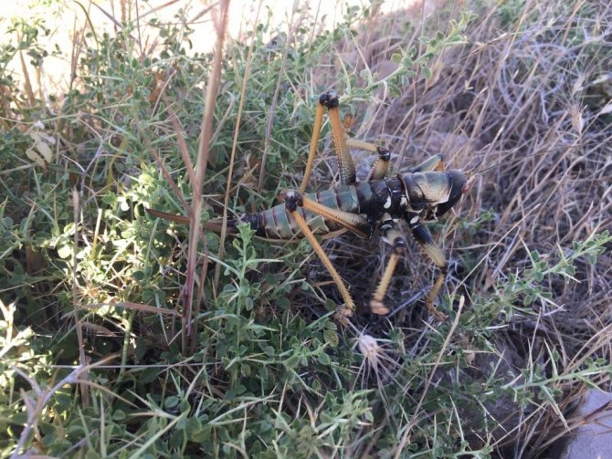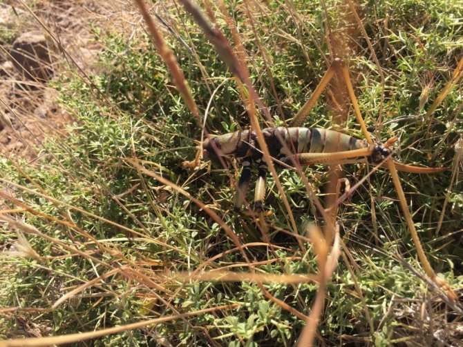 Tarlada çalışırken vatandaşlar tarafından dev çekirge fark edildi. Büyüklüğü yaklaşık 20 santim olan çekirgeyi cep telefonuyla görüntüleyen vatandaşlar daha sonra araştırdıklarında çekirgenin et yiyen çekirge olduğunu öğrendi.