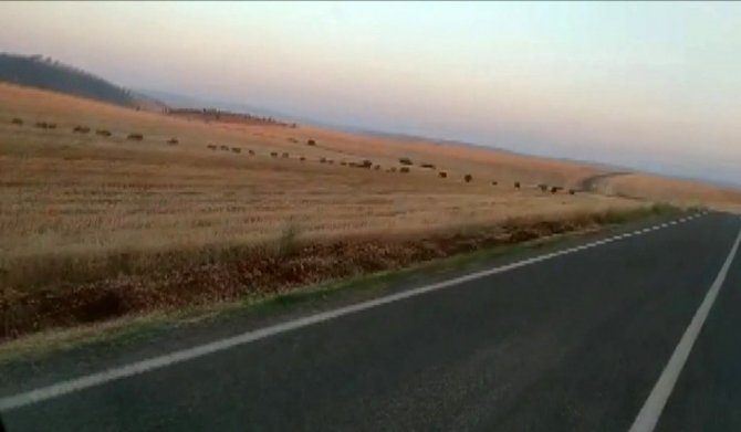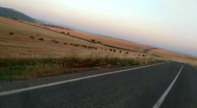 Adıyaman'da onlarca yaban domuzu saatte yaklaşık 30 kilometre hızla koşarken görüntülendi.