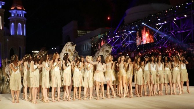 Tesis içinde bulunan ve boyu 111 metreyi bulan Legends Tower önünde havuz üzerinde kurulan özel podyum, Victoria’s Secret’in ünlü Brezilyalı modelleri Adriana Lima, Isabeli Fontana, Izabel Goulart ve Ana Beatriz Barros’ı ağırladı. Yaklaşık 5 bin davetlinin katılımıyla gerçekleşen defilede Brezilyalı modeller 3’er kıyafet sergiledi. Konseptini ve koreografisini Öner Evez ile Yakup Biçer’in hazırladığı defilede Rusya’nın son dönemde en çok konuşulan isimlerinden “çılgın manken” lakaplı Viktoria Odintsova da yer aldı.
