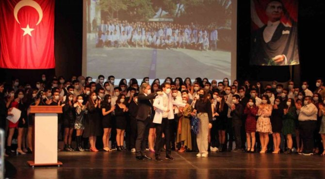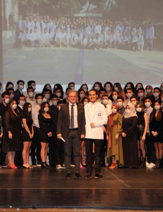Konuşmaların ardından üçüncü ve dördüncü sınıf öğrencilerinin hazırladığı videolar izletildi. Dereceye giren öğrencilere Rektör Yardımcısı Prof. Dr. Cumali Öksüz, Diş Hekimliği Fakültesi Dekanı Prof. Dr. M. Şamil Akyıl ve Aydın Diş Hekimleri Odası Başkanı Günhan Eskicioğlu tarafından beyaz önlükleri giydirilerek hediyeleri verildi.