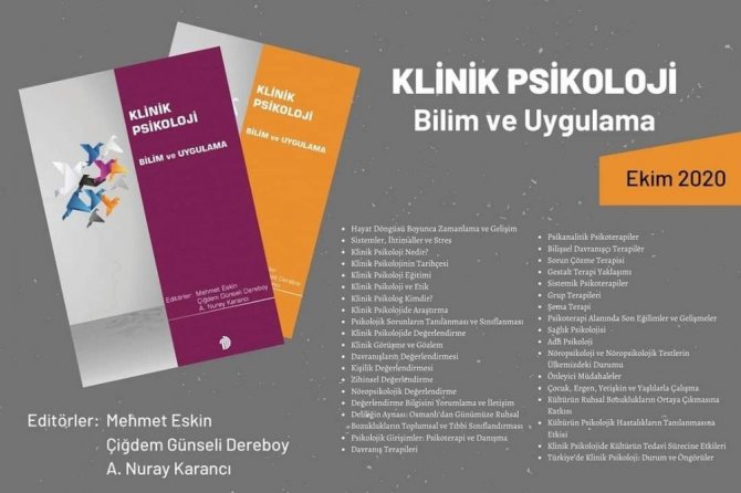 Aydın Adnan Menderes Üniversitesi (ADÜ) Tıp Fakültesi Ruh Sağlığı Hastalıkları Ana Bilim Dalı Öğretim Üyesi Prof. Dr. Çiğdem Dereboy ve aynı ana bilim dalı emekli Öğretim Üyesi Prof. Dr. Mehmet Eskin’in editörlerinden olduğu ‘Klinik Psikoloji Bilim ve Uygulama Kitabı’, Türk Psikologlar Derneği tarafından yayınlandı.