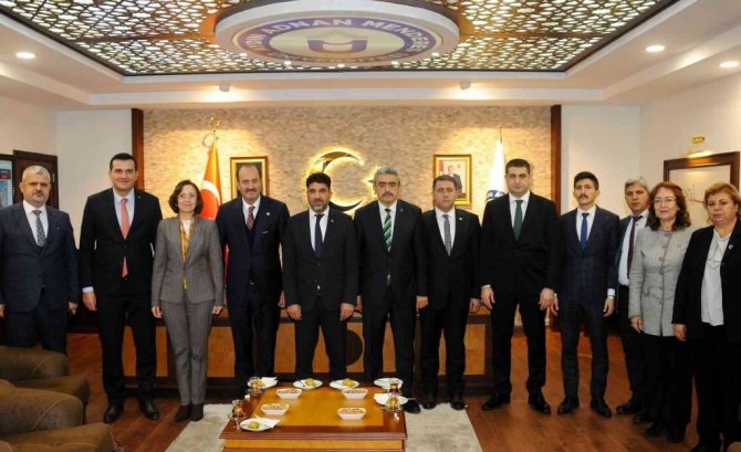 Milliyetçi Hareket Partisi (MHP) heyeti, Aydın Adnan Menderes Üniversitesi (ADÜ) Rektörü Prof. Dr. Osman Selçuk Aldemir'i makamında ziyaret etti.