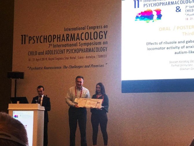 Like Rat Model” adlı projesi, Antalya’da düzenlenen 11. Uluslararası Psikofarmakoloji Kongresi’nde “En iyi Araştırma” dalında üçüncülük ödülünü kazandı.