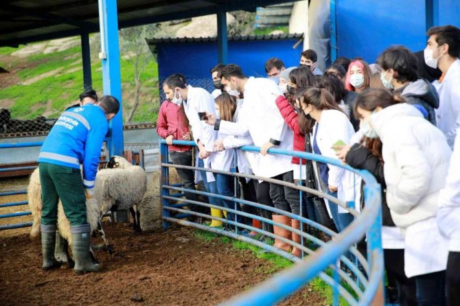 Aydın'ın önemli hayvan işletmelerinden olan Aydın Büyükşehir Belediyesi'nin Sakız Koyunu Çiftliği, veteriner hekimlik öğrencileri için de ders sahası olarak kullanılıyor.