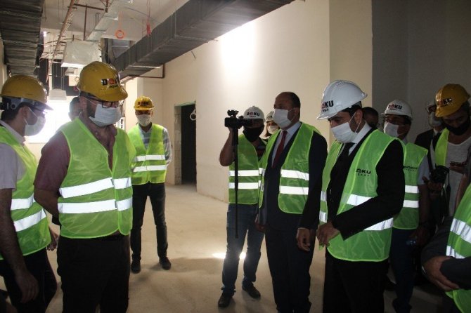 ADÜ Tıp Fakültesi Hastanesi’nin yanında geçtiğimiz yıllarda temeli atılan 55+50 yoğun bakım, 233 hasta, 34 sabit pandem olmak üzere toplam 372 yatak kapasiteli hastane binasında toplantı düzenleyen ADÜ Rektörü Prof. Dr. Osman Selçuk Aldemir inşaatın 9 Aralık 2020 tarihinde tamamlanacağını belirtti.