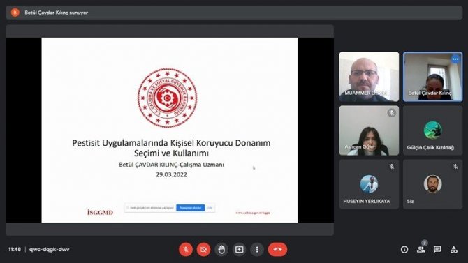 İSG Uzmanı Betül Çavdar Kılınç tarafından gerçekleştirilen "Pestisit Uygulamalarında Kişisel Koruyucu Donanım Seçimi ve Kullanımı" konulu eğitimde, kişisel koruyucu donanımların neler olduğu ve bunların sahada doğru kullanımına azami dikkat edilmesi yönünde bilgi verildi.