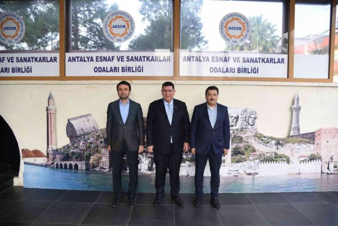 AK Parti Antalya Milletvekili ve MKYK Üyesi Mustafa Köse ile AK Parti Antalya Milletvekili Kemal Çelik, Antalya Esnaf ve Sanatkarlar Odaları Birliği'ni ziyaret ederek AESOB Başkanı Adlıhan Dere ile görüştü. Buluşmada konuşan AESOB Başkanı Dere, Pandemi döneminde milletvekillerinin desteklerini gördüklerini belirterek, "Dükkanların açılması, esnafımızın artık para kazanması ile ilgili taleplerimizi İçişleri Bakanımız Süleyman Soylu'yu arayıp, taleplerimizi ilettiniz. Bu sebeple Türkiye genelinde esnafın yararına alınan her türlü olumlu kararda Antalya'mız öncülük etti" dedi.