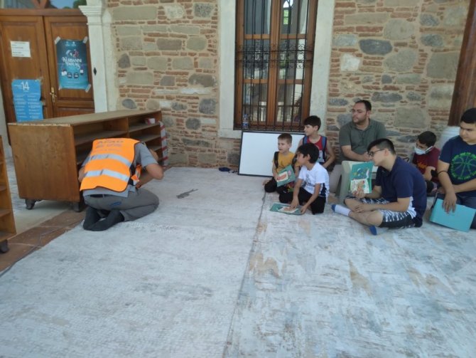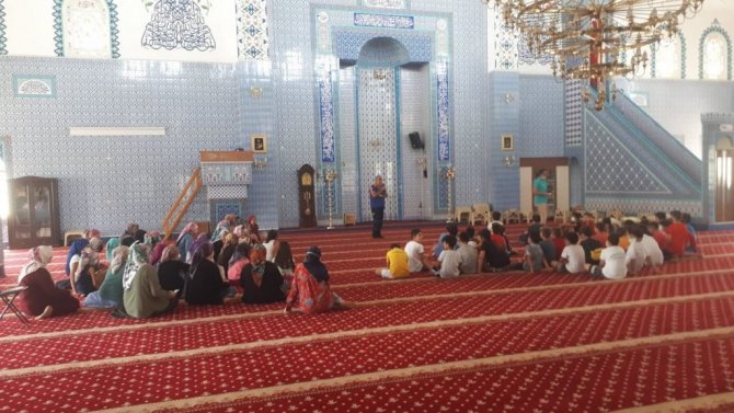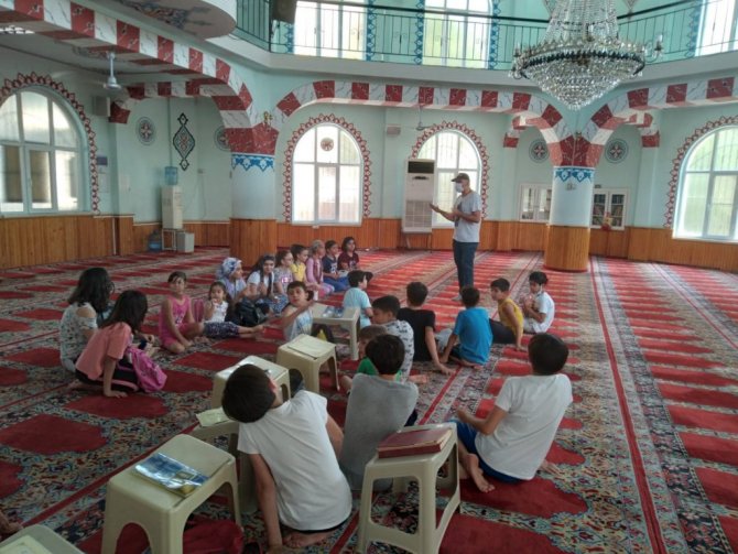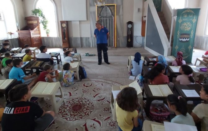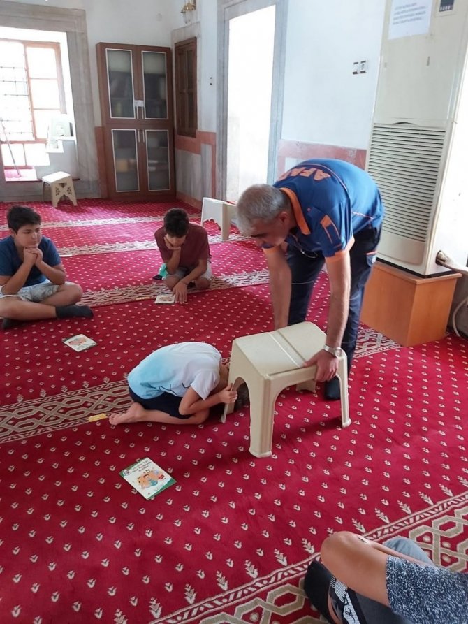 Afet ve Acil Durum Yönetimi Başkanlığı (AFAD) Aydın İl Müdürlüğü tarafından Aydın'da Yaz Kur'an Kurslarına katılan çocuklara ve cami cemaatine afet farkındalık eğitimi veriliyor.