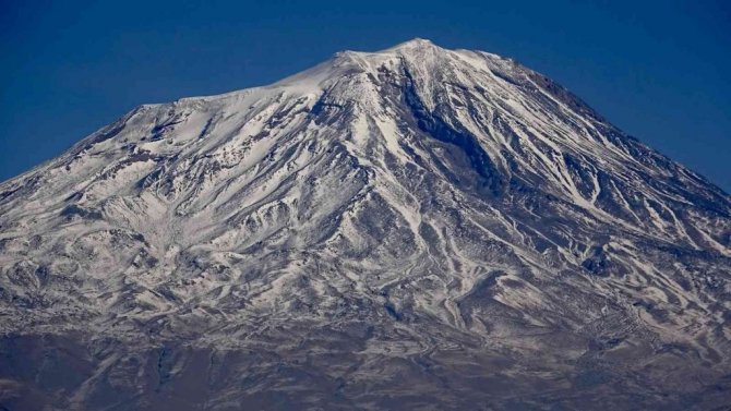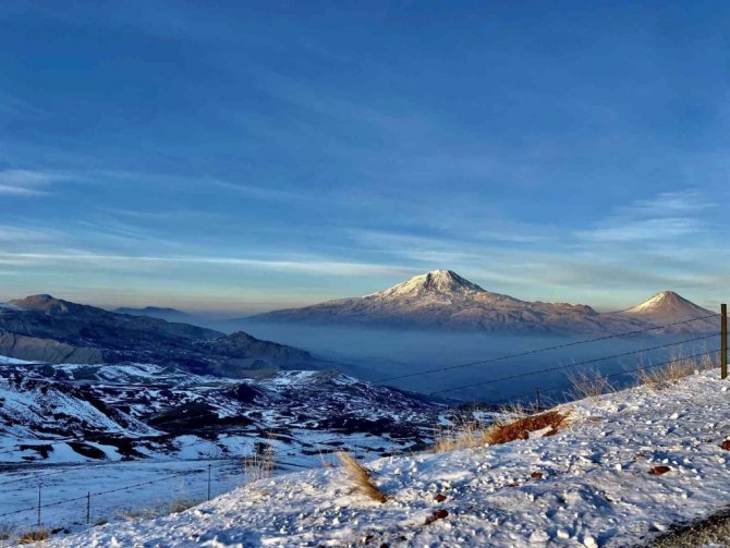 "Türkiye'nin çatısı" olarak bilinen Ağrı Dağı, zirvesindeki beyaz örtüsüyle göz kamaştırıyor.