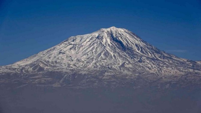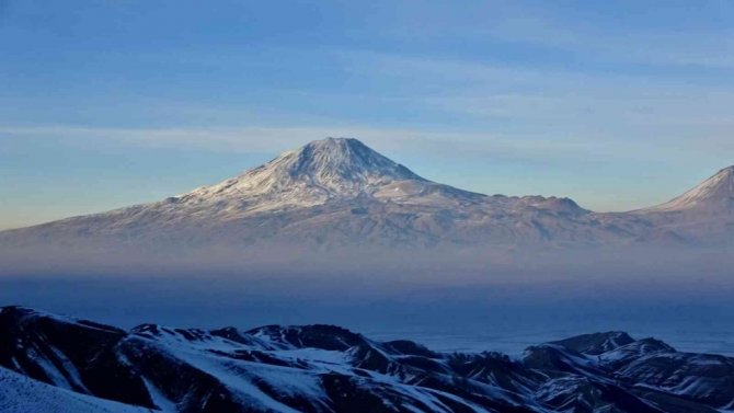 Ağrı'nın Doğubayazıt ilçesinde bulunan ve deniz seviyesinden 5 bin 137 metre yüksekliği ile Türkiye'nin en yüksek dağı olma özelliğini taşıyan Ağrı Dağı, zirvesindeki beyaz örtüsüyle adeta göz kamaştırıyor.