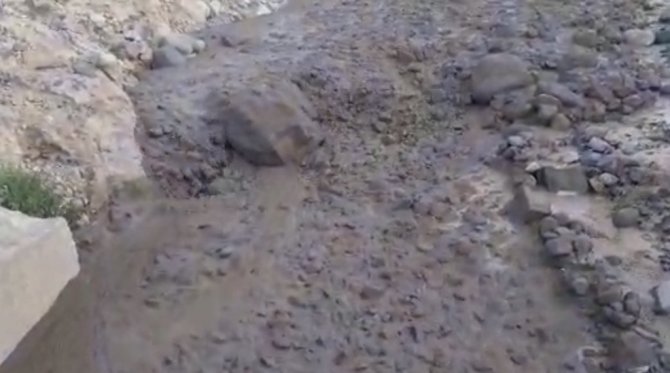 Ağrı Dağı'nın yüksek kesimlerinde bulunan karların erimesi sonucu oluşan kaya, taş ve çamur selini gören vatandaşlar hayrete düştü.