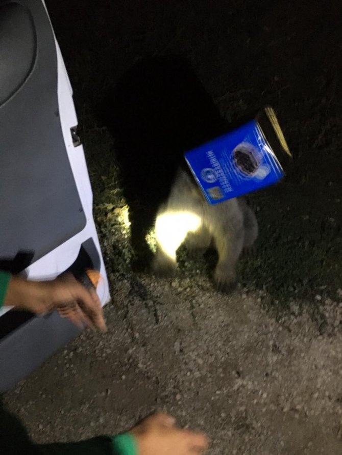 İhbar üzerine olay yerine giden Doğubayazıt Belediyesi İtfaiye Müdürlüğü ekipleri, kurtarma çalışmaları kapsamında ayı yavrusunu uyuşturucu iğnelerle sakinleştirildi. Daha sonra teneke kutuyu kesen ekipler, yavru ayıyı kurtararak doğaya geri bıraktı.