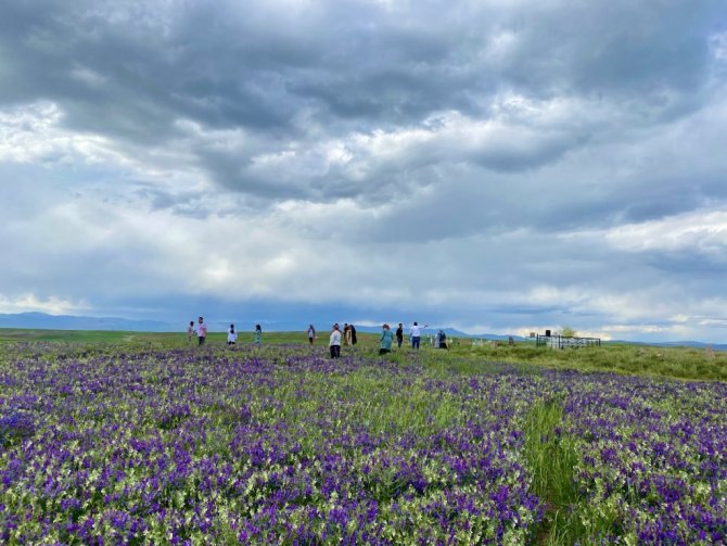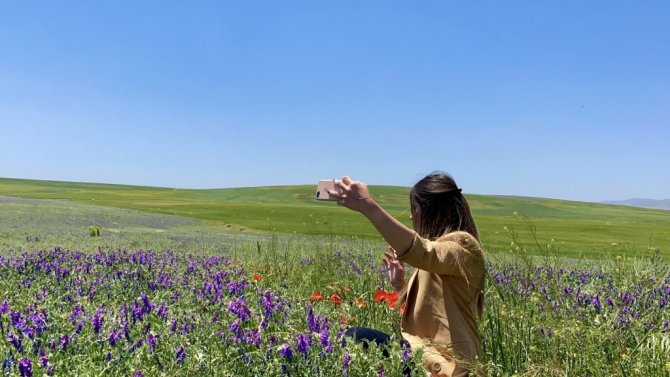 Ağrı'da rengarenk çiçeklerle bezenmiş ovalarda renk cümbüşü yaşanırken, kente diğer illerden akrabalarını ziyarete gelenler doğanın içinde manzaranın tadını çıkardı.