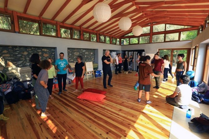 Tiyatro atölyesinin kurulmasında önemli rol üstlenen sanatçı Tilbe Saran, atölyenin kurulma aşamasını anlattı. Bakmaya geldikleri ilk anda kendilerini buraya ait hissettiklerini belirten Saran, “Buraya geldiğimizde kapı kapalıydı. Yan düşmüş bir kapı, 15 yıl kimsesiz kalmış bir yerdi. Öncelikle şu anda stüdyo olan yeri gördük. Ahır olarak kullanılmış ancak çökmüş haldeydi. Artık taşıyıcıları da çökmüş sadece taş duvarlar kalmıştı. Burası çok hoşumuza gitti ve burada çok güzel bir tiyatro atölyesi kurulabileceği fikri belirdi. Aslında burası bir kadın girişimi diyebiliriz. Çünkü burayı gösteren bir kadın, projeye biz 3 kadın olarak başladık. Bu bizim ilk etkinliğimiz ve bu da gene bir kadın aracılığıyla başlamış oldu” dedi.