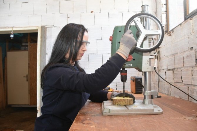 İzmir’in Aliağa ilçesi Karakuzu Mahallesinde ikamet eden Aysel Arslan, daha önce ahır olarak kullanılan yapıyı ağaç oyma atölyesine çevirerek girişimcilik konusunda örnek oldu.