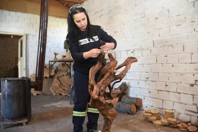 Aliağa Belediye Başkanı Serkan Acar’ın da destekleriyle ahırdan bozma bir yapıyı üretim atölyesine dönüştüren Aysel Arslan, hedefinin hem doğada kurumuş ağaçlara geri dönüşümle yeniden hayat vermek hem de tüm ev hanımlarının hayallerine ışık tutmak olduğunu söyledi. Genel olarak derede ve doğada kendince şekil almış, halk arasında selenti denen ağaç türleriyle ilgilendiğini belirten Aysel Arslan, “Fazla dokunulmadan elde edilen görsellik ortaya çok daha güzel işler çıkartıyor. Bu ağaçların dışında yangınlarda hasar görmüş, doğada atıl durumda olan ağaçları geri dönüşümle yeniden değerlendirilmesine çalışıyorum. Boş vakitlerimi değerlendirirken ağaçları yeniden yaşama kazandırmak bana ayrıca mutluluk veriyor” dedi.