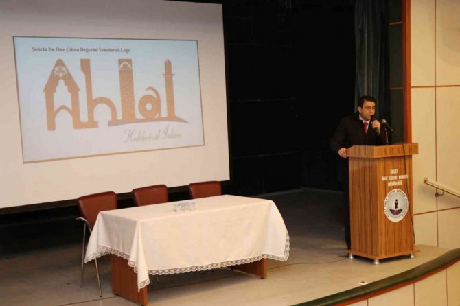 Ahlat Halk Eğitimi Merkezi Müdürlüğü Abdurrahman Gazi Konferans Salonunda düzenlenen toplantıya Ahlat Kaymakamı Fikret Dağ, Ahlat Belediye Başkanı Abdualim Mümtaz Çoban, Ovakışla Belediye Başkanı Abdurrahim Altındal, Ahlat Meslek Yüksekokul Müdürü Harun Koçak ve kurum amirleri katıldı. Saygı duruşu ve İstiklal Marşı'nın okunmasından sonra Ahlat Kaymakamlığı Proje Birimi Koordinatörü Necati Aktekin tarafından logo ve slogan tanıtımı, izlenecek yol haritası, kısa, orta ve uzun vadedeki hedefler, marka stratejileri, kültürel ve tarihi değerleriyle önemli turizm potansiyeline sahip olan Ahlat ilçesinin marka değeri taşıyan özelliklerinin ön plana çıkarılarak turizmden istenilen payı elde etmesi, marka şehir modeli ile Ahlat'ın rekabetçi bir konum elde etmesi ve sahip olduğu özellikler ile dünya genelinde marka şehir olarak konumlanabilmesi için yapılacak çalışmalar hakkında sunum yaptı.