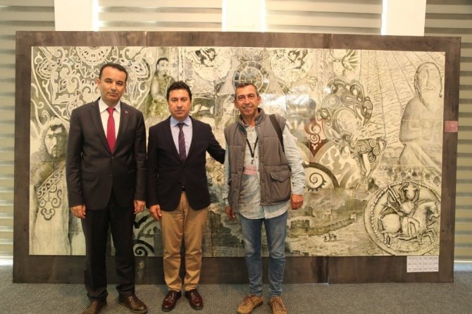 Başkan Aras, sergide ürünleri bulunan sanatkarları tebrik ederek bu özel eserleri Türk kültürüne ve kültür turizmine kazandırdıkları için kendilerine teşekkür etti.