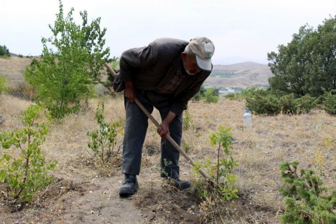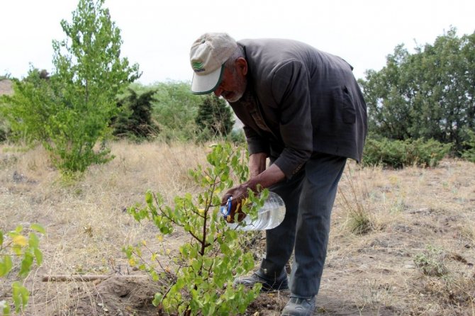 Nevşehir'in Acıgöl ilçesine bağlı Karapınar beldesinde yaşayan 78 yaşındaki Ahmet Soylu, 34 yıldır kasabasında bulunan dağa fidan dikiyor.