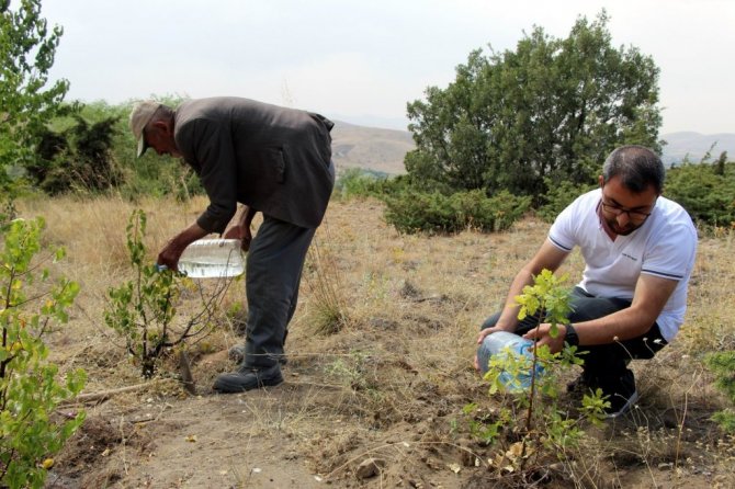 Ahmet Dede, kasabasında bulunan dağa 34 yıldır fidan dikiyor