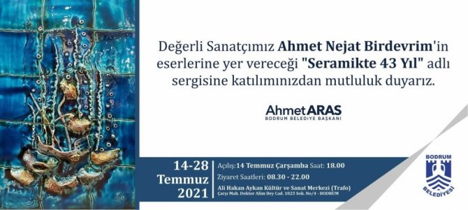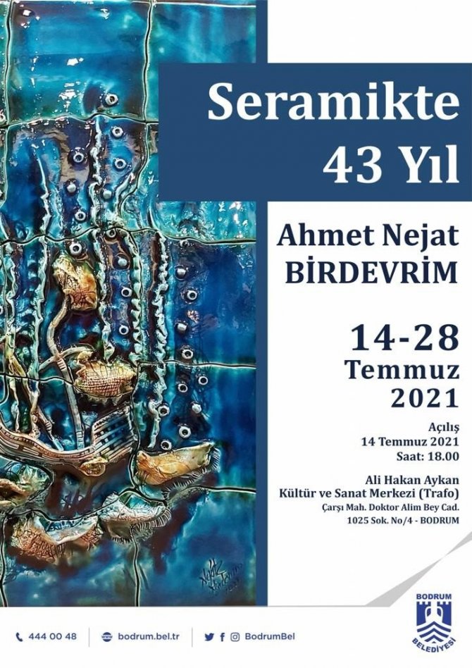 Seramik Sanatçısı Ahmet Nejat Birdevrim'in "Seramikte 43 Yıl" adlı kişisel sergisi, Bodrum Belediyesi'nin destekleriyle Trafo Bodrum-Hakan Aykan Kültür ve Sanat Merkezi'nde açılıyor. Sergi 14-28 Temmuz tarihleri arasında sanatseverlerle buluşacak.
