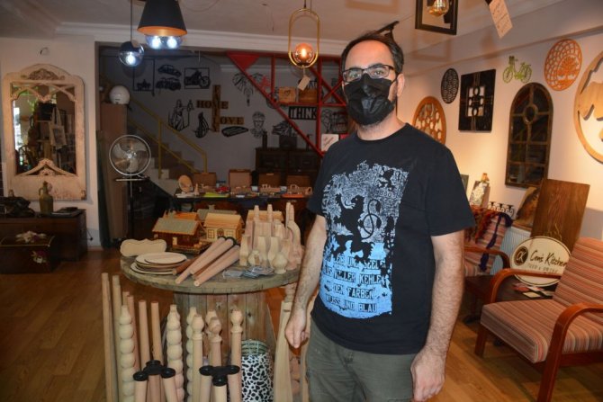 3D modelleme ve proje alanında başarılı çalışmaları olan tasarımcı Birol Ergül, "Yenilikler, ancak onlar için yer açtığınızda hayatınıza girebilirler. Buradaki birçok ürünün hikayesi, yaşanmışlıkları var. Bunları nasıl revize ederiz, günlük hayatımızda hem görsel hem de işlevsel açıdan nasıl değerlendirebiliriz diye düşünüp taşınıyoruz. İşlevini yitirmiş, kullanılıp yıpranmış, doğada sadece bir atık olarak kalacak atmosferde belki de duman ve karbon monoksit olarak hayatımıza geri gelecek bir şeyi fonksiyonel hale getirebiliriz diye düşünüyorum. Zaten öylece bırakılmış bir malzeme gördüğüm zaman, o nesneye dair hemen zihnimde bir tasarım canlanıyor. Sadece var olanı yenileyip dönüştürmüyoruz. Kişiye özel tasarımlarımızla doğum günü, yıl dönümü, bebek hediyesi, içimden geldi sevdiklerimi mutlu edeyim diyenler için hediye verilenlerin gönlünü kazanacak ürün seçeneklerimizi de sunuyoruz müşterilerimize" dedi.