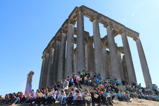 Kütahya’nın Çavdarhiar ilçesinde bulunan Aizanoi Antik Kenti’nde, 450 öğrencinin katıldığı kitap okuma etkinliği düzenlendi.