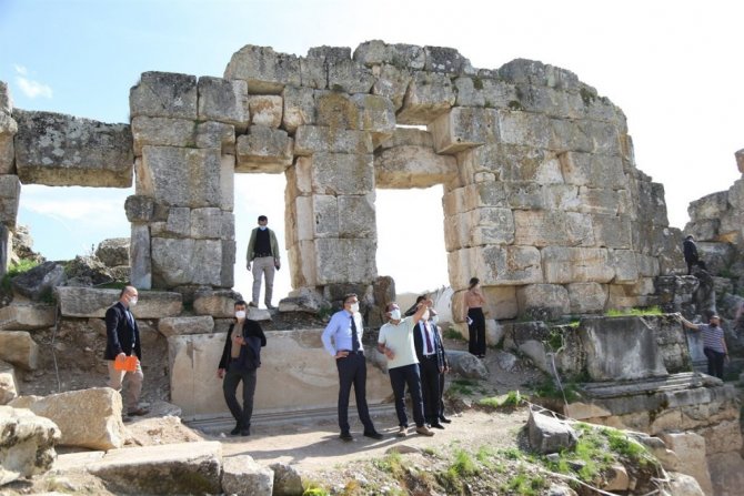 Anadolu'daki en iyi korunmuş Zeus Tapınağı ile dünyanın ilk borsasına ev sahipliği yapan antik kentte hummalı çalışmaları yerinde inceleyen Vali Ali Çelik, son durum hakkında bilgiler aldı. 2 No'lu Roma köprüsünün restorasyon çalışmalarının titizlikle sürdürüldüğünü kaydeden Vali Çelik, Penkalas Çayı projesi kapsamında başlatılan kazı çalışmalarında orijinal rıhtım duvarlarına ulaşıldığını, tapınak karşısında devam eden kazıda ise Agora'nın gün yüzüne çıkarılmaya başlandığını söyledi.