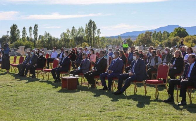 Daha sonra kürsüye Vali Ali Çelik geldi. Projeye emek veren, katkı sunan herkese teşekkür eden Vali Ali Çelik, Aizanoi Antik Kenti'nin görkemli ve ihtişamlı yapılarını, farklı kültürel değerlerini tüm dünyayla buluşturacak çalışmalarda ilk adımın atılmasından duyduğu mutluluğu paylaştı.