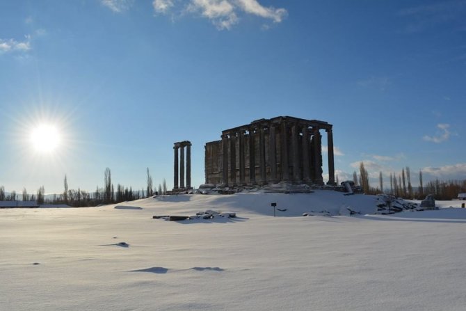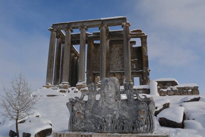 Kütahya İli, Çavdarhisar İlçesi sınırları içerisinde yer alan Aizanoi Antik Kenti’nde kar yağışı ile birlikte karpostallık görüntüler ortaya çıktı. Zeus Tapınağı, Stadyum -Tiyatro Kompleksi ve dünyanın ilk borsası kar yağışıyla muhteşem bir görünüme kavuştu.