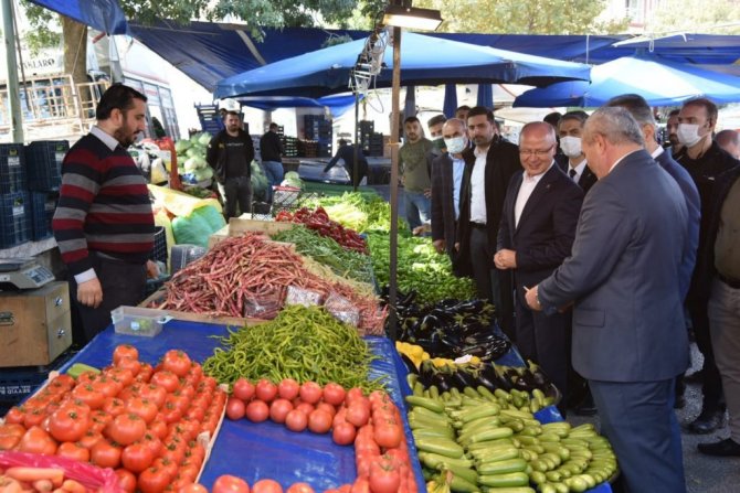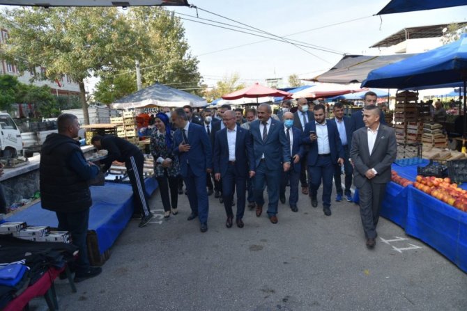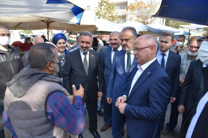 AK Parti Bursa İl Başkanı Davut Gürkan, Büyükşehir Belediye Başkanı Alinur Aktaş ile birlikte Alemdar Mahallesi'nde kurulan semt pazarında esnaflarla biraraya geldi.