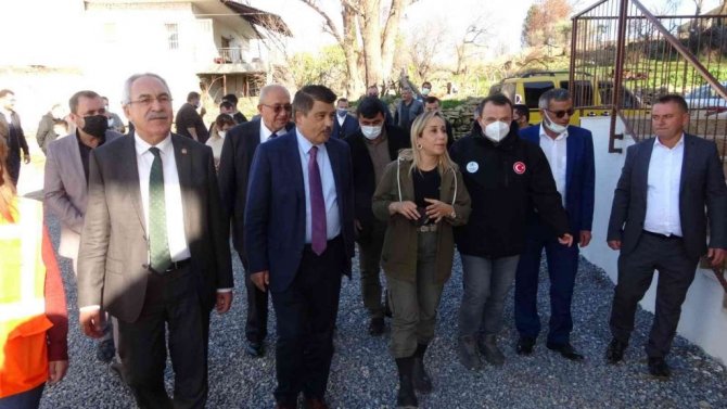 AK Parti Antalya İl Başkanı İbrahim Ethem Taş, Milletvekilleri Tuba Vural Çokal, Mustafa Köse, Kemal Çelik ve İbrahim Aydın ile birlikte Demirciler Mahallesi'nde yapımına devam edilen yangın evlerinde incelemelerde bulundu.