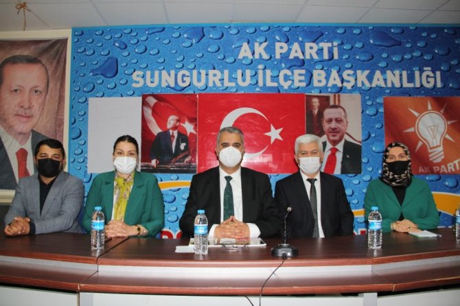 AK Parti Çorum İl Başkanı Yusuf Ahlatcı, Sungurlu İlçe Teşkilatını ziyaret etti. AK Parti Yönetim Kurulu üyeleri, AK Parti İlçe Başkanı Metin Özsarı ile birlikte parti binasında bir istişare toplantısı düzenleyen Ahlatcı, parti çalışmaları hakkında bilgi verdi.