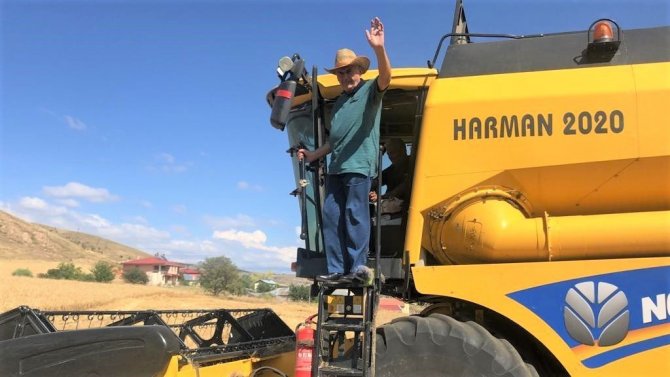 AK Parti Genel Başkanvekili Binali Yıldırım, memleketinde arpa ekili arazide biçerdöverle hasat yaptı.