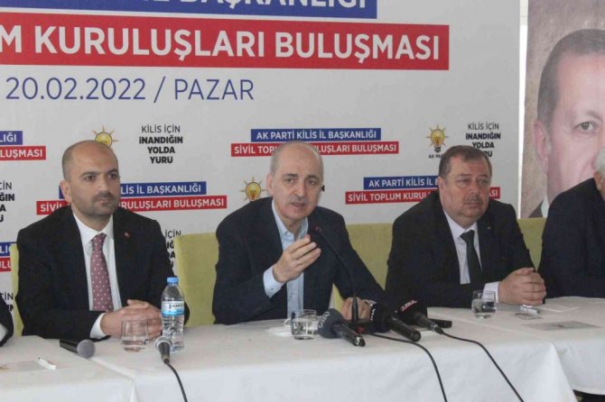 AK Parti Genel Başkanvekili Prof. Dr. Numan Kurtulmuş, bir dizi programa katılmak için geldiği Kilis'te sivil toplum örgütü temsilcileriyle bir araya geldi. AK Parti İl Başkanı Mehmet Murat Karataş'ın kısa hitabından sonra bir konuşma yapan Kurtulmuş, Kilislilere Suriyeli mültecilere yaptıklarından dolayı teşekkür ederek, "Kolay değil, 11 yıldır hemen karşı tarafta, nerede ise her şeyimiz aynı olan Suriye halkının önemli bir kısmının büyük bir zulüm içerisinde yaşamasına Kilis seyirci kalmamış, oradan kopup gelen Suriyeli kardeşlerimize burada ev sahipliği yapmış, yarım ekmeği varsa bölüşmüş, temiz yarım suyu varsa bölüşmüş, burada Kilisliler Suriye'den gelen kardeşlerimize tam manasıyla ensar olmuştur. Hani şehirlere isim veriyoruz ya, Kilis'e de bir unvan verilecekse Kilis'in adının ensar şehir olması gerektiğini düşünüyorum" dedi.