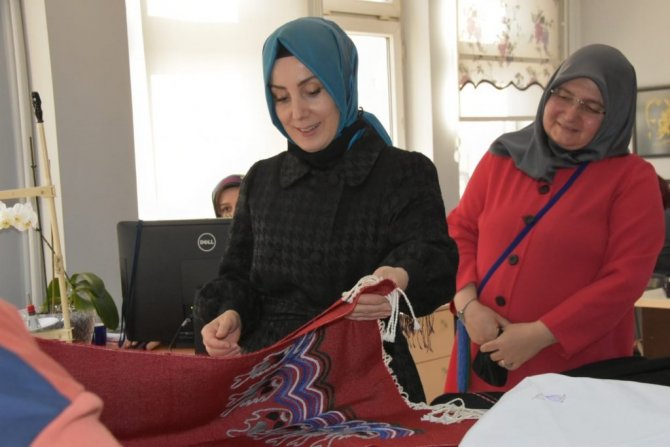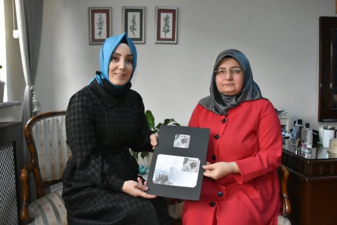 Trabzon Olgunlaşma Enstitüsü tarafından Kanuni'nin muhibbi divanındaki tezhip desenlerinden esinlenerek tasarlanan ve üretilen telkari broş ile yapılan pul tasarımının Türkiye'de birinci seçilmesi ardından Euromed Akdeniz ülkeleri pul yarışmasında da 3. olarak uluslararası ödül almasından dolayı Sibel Karabina ve ekibini tebrik eden Milletvekili Bahar Ayvazoğlu takının kuyumculuk atölyesindeki tasarım sürecinden üretim aşamasına kadar bilgi alarak, "ihtişamdan zarafete" kitabını inceledi.