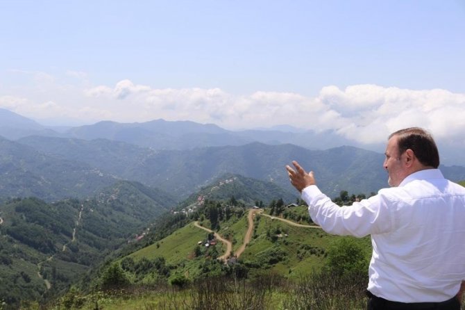 Giresun'un Eynesil ilçesinde bir grup genç tarafından betonlama çalışması başlatılan Sis Dağı Yaylası yolunda AK Parti Giresun Milletvekili Sabri Öztürk incelemelerde bulundu.