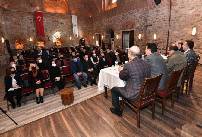 Osmangazi Belediye Başkanı Mustafa Dündar, Bölgesel Mahalle Danışma Meclisi Toplantısı'nda mahalle muhtarları ve mahalle temsilcileri ile bir araya gelerek, yapılan çalışmalar hakkında bilgi verdi.
