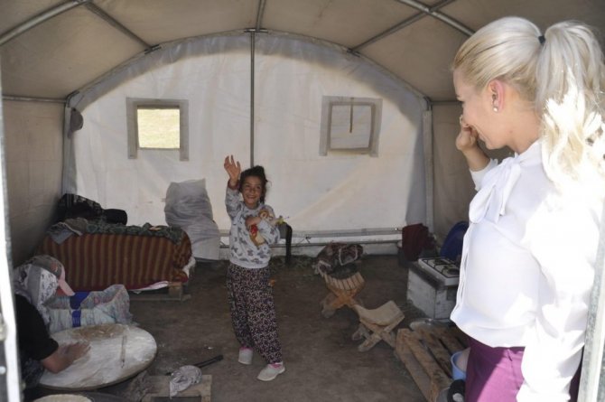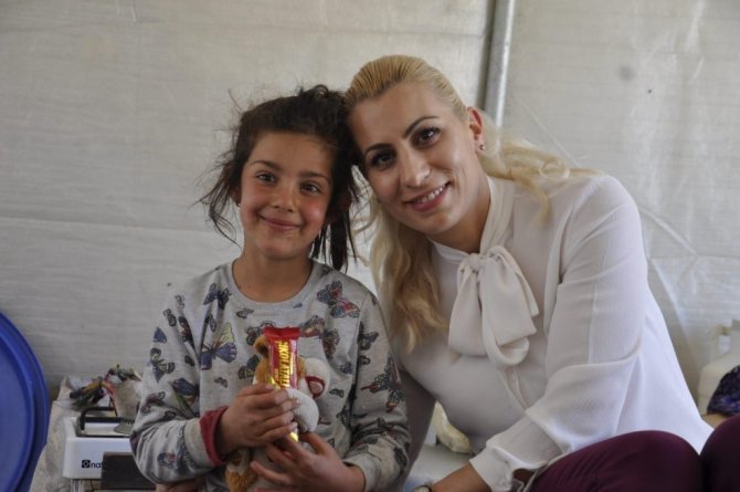 Başkan Kılıçoğlu ve heyeti yaylada bulunan çocuklara da çeşitli hediyeler verdi.