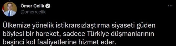 Çelik, Türkiye'ye yönelik istikrarsızlaştırma siyaseti güden söz konusu hakaretlerin, yalnızca Türkiye düşmanlarının beşinci kol faaliyetlerine hizmet ettiğini belirterek, şöyle devam etti: