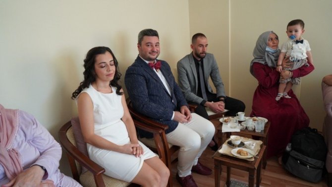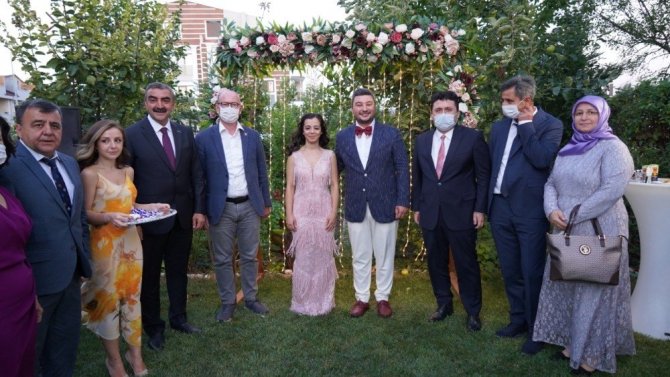 Kız isteme merasiminin ardından nişan törenine geçildi. Çiftin nişan yüzüklerini Cumhuriyet Halk Partisi Balıkesir İl Başkanı Serkan Sarı taktı.