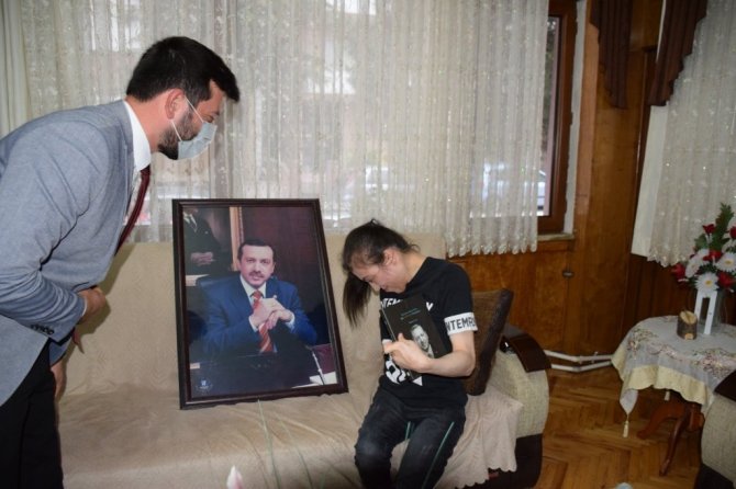 AK Parti Karabük İl Gençlik Kolları Başkanı Nurullah Çelik ve yönetimi, Cumhurbaşkanı hayranı 24 yaşındaki Serebral Palsi rahatsızlığına sahip Merve Ergül'ü ziyaret ederek Cumhurbaşkanı Recep Tayyip Erdoğan'ın çerçeveli fotoğrafını hediye etti.