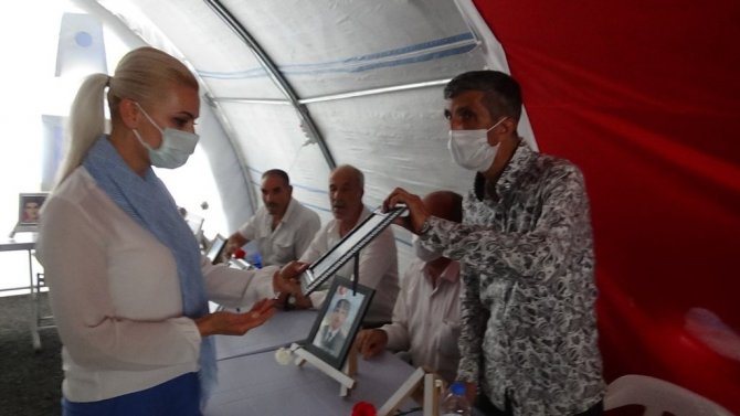 Çocukları terör örgütü PKK tarafından zorla dağa kaçırılan ve 723 gündür evlat nöbetinde olan aileleri ziyaret eden AK Parti Pülümür İlçe Başkanı...