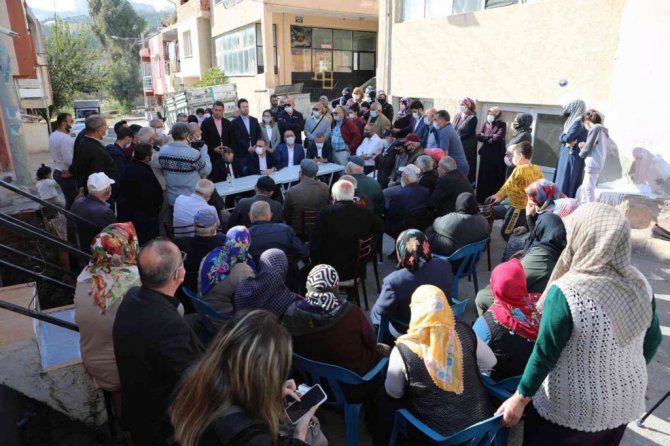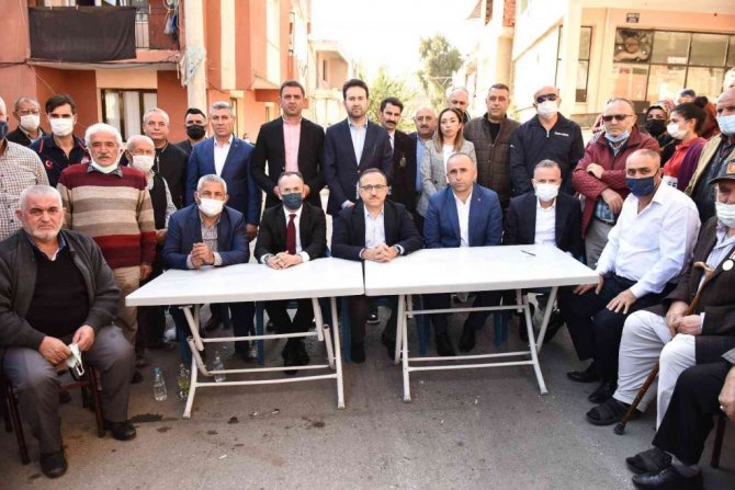 AK Parti İzmir İl Başkanı Kerem Ali Sürekli, Yurtoğlu Mahallesi sakinleriyle bir araya gelerek, Büyükşehir Belediyesine "Tapuları devredin, sözleşmeleri...