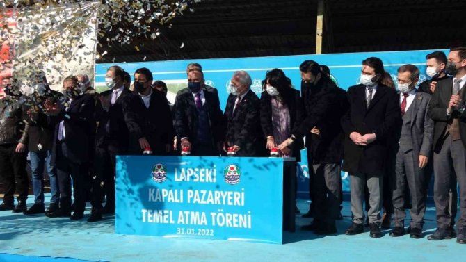 Konuşmaların ardından dualar eşliğinde Lapseki kapalı pazar yerinin temel atma töreni gerçekleştirildi.